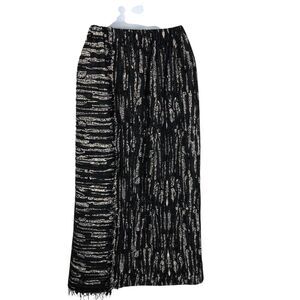 Nuno Co Japanese XS Sweater Skirt Black Ivory Unlined Elastic Waist Frayed Edge