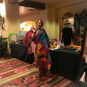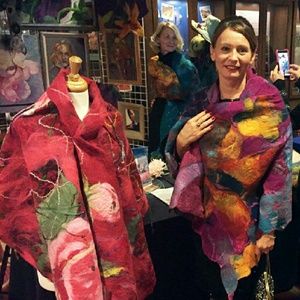 Luxury Nuno felted scarf hand made in mosaic technic using Margilan silk and Italian fine wool. Very light and worm.