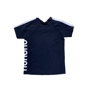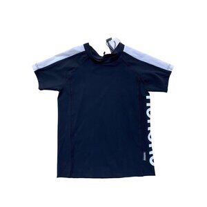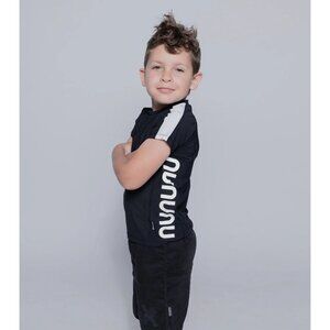 a black short-sleeve rashguard is the cool kid’s beach basic, and this one definitely takes it up a notch. sporty white stripes on the arms match the big nununu logo on the side. pop it on at the beach for a little extra spf, or just to be extra.