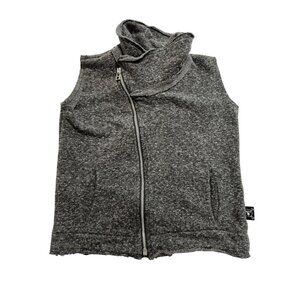 Description from retailer: a little basic & yet entirely essential. this unisex charcoal grey cotton vest comes with our asymmetrical front zip. relaxed for movement, and featuring side pockets for stashing untold treasures, this piece layers as nicely as it wears alone during transitional months.
