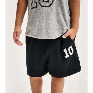 whatever game they're playing, your kid is always ready to give it their all. that's why we’ve got the number 10 printed on the leg of these shorts to represent their 10/10 energy. of course, they’re a gender neutral cut made of black french terry that's as soft as your kid is serious about winning. the stretchy waistband makes them perfect for throwing on for any activity and makes sure they’ll stay on too. plus, pockets are conveniently there for stashing headphones before & after warm ups. ready, set, play.