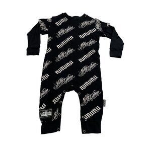 babies are all about discovering new places to explore & finding mischief along the way. this piece brings that goal to life. it’s all black to represent their spirit with tat inspired logos in bright white to show off their future love of ink. makes sense because it was made in collab with super talented tattoo artist mister cartoon. it’s a cozy rib fabric with long sleeves that have that twofer layered look so they can look hard while feeling soft. crotch snaps guarantee easy changing because this baby is ready to make a mess one way or another.