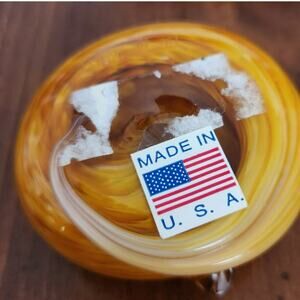 Nunwell Amber Swirl Art Glass Sleeping Cat 2-1/4" Paperweight Signed Nunwell 07