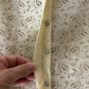 Nuon Lace Button Up Blouse With Denim Look Collar And Pocket Flap. Small.