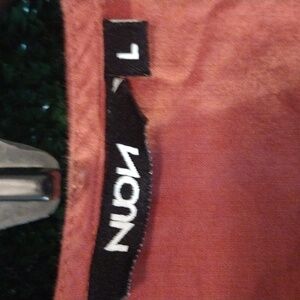 This rust blouse from nuon features a chic mandarin collar and a stylish cropped, boxy fit. The ruffled short sleeves add a touch of femininity, while the intricate eyelet detailing throughout gives it a vintage-inspired charm. pre-owned smoke-free
