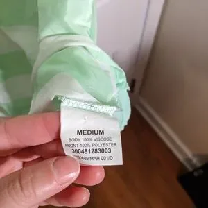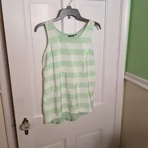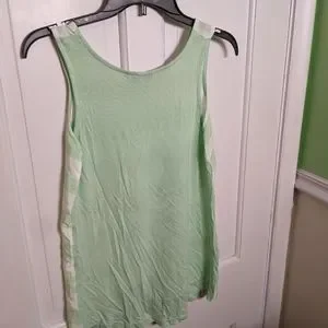 This tank top is slinky and perfect for summer! cute colors of mint and white. The back is a solid mint color. Measurements are 18 inches pit to pit and 25 inches from shoulder to bottom.