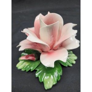 Made in Italy, lovely rose and yellow Capodiamonte Candlestick holders.