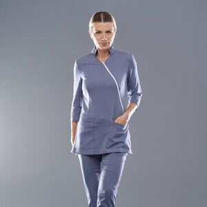 Nuraxi Active Set is the set composed of a tunic and trousers from the new Active line by Pastelli. A great classic by Pastelli that is always in great demand by our customers for its practicality, comfortable fit, feminine line while still being professional, all combined with tight and comfortable trousers.