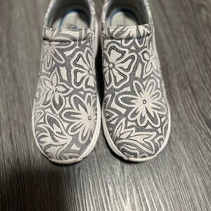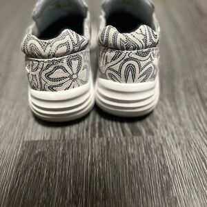Nurse Mates Black and White Moccasins with Geometric Pattern