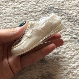 Vintage & RARE collectible white Clara nursing shoe from Nurse Mates Collectibles. From the days of Clara Barton comes the heritage of nursing footwear. Strong, serious and dependable, the Clara reflects its namesake. Nurse Mates has designed a collection of nursing shoe miniatures that reflect the footwear trends and favorites throughout nursing history. This Clara shoe is white and measures 1.5 inches by 3.75 inches by 1.4 inches. It’s made of a high-quality resin. Still comes in original pack