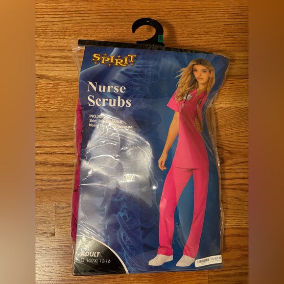 Vibrant pink nurse scrubs. Includes top, pants and accessories. Worn once.