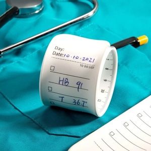 In the busy world of healthcare professionals, this is the perfect gift! Our silicone memo wrist band is durable, waterproof, soft and comfortable to wear. Just tap it gently on your wrist, it will form a circle and firmly stay on your wrist. Perfect for writing reminders, notes, to-do lists, and vital signs. You can use an oil based ballpoint pen to write and simply erase the notes with an alcohol wipe.