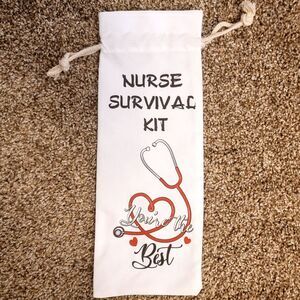 Nurse Survival Kit Canvas Wine Drawstring Gift Bag