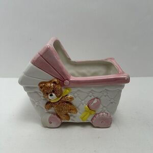 Nursery Baby Carriage Planter Ceramic Buggy Stroller Home Decor Vintage China