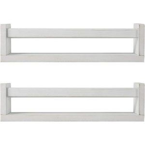 Nursery Book Shelves, Set of 2 Wood Floating Book Shelves for Kids, Rustic White