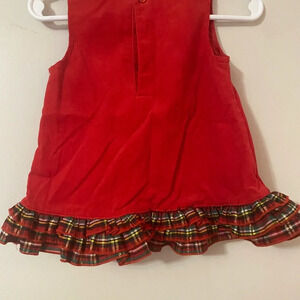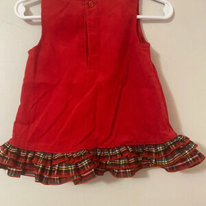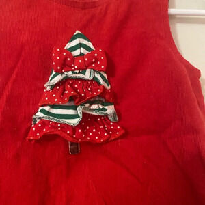 Red soft corduroy jumper with ruffled Christmas tree on front