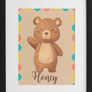 Each print can be customized with the name and animal character of your choice; please send a message with the correct spelling of the name and animal choice. If you prefer a canvas print instead of cardstock, please include that in your message so a unique listing can be created for you.