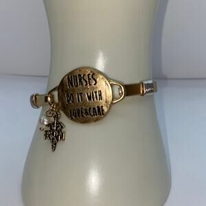 Nurses Do It With Love & Care Gold-Tone Charm Bangle Bracelet