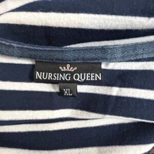 Nursing Queen Womens Navy Striped Nursing Top XL 3/4 Sleeve with Hidden Zipper