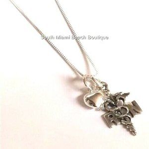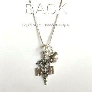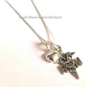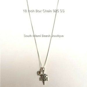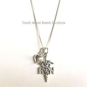 Nursing RN Caduceus Necklace Sterling Silver 925 Puff Heart Graduation Gift