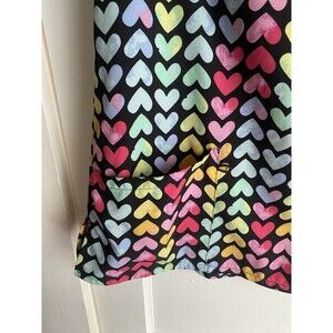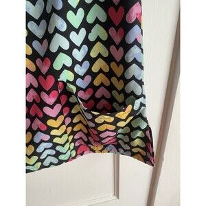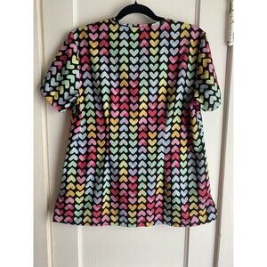 Nursing Scrub Top Uniform Hearts Rainbow Women’s Size Medium V-Neck Pockets EUC