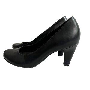 Nurture Avery Black Leather Career Comfort Fit Heels Sz 8 Womens Black Round Toe