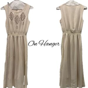 Nurture Beige Embroidered Size Small Linen Toga Dress