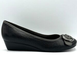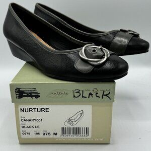 Nurture Canary 001 Black Wedge Heel Buckle Accented Shoes, Size 7-1/2 M With Box