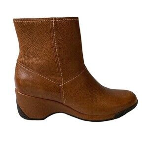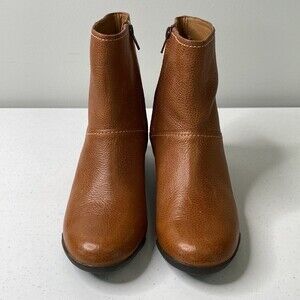 Nurture Grant Honey Brown Leather Boot Zip Ankle Bootie Wedge Heel Classy Neutra