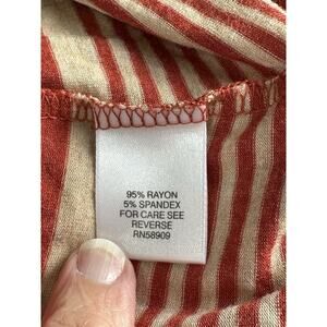 The Nurture Ladies Top in Size XL features a stylish stripe pattern in rust and tan, perfect for fall and winter. The relaxed fit and scoop neckline offer a comfortable and trendy look, while the long sleeves and casual sleeve type add a touch of ease. Made from a soft knit fabric blend of spandex and rayon, this pullover blouse is lightweight, breathable, and stretchy, making it ideal for various occasions including travel, parties, casual wear, and even work. Hand wash only for the best care, this top is a versatile addition to any wardrobe.