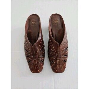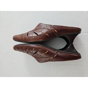 Nurture Lafayette Leather Mules Brown Slip On Shoes Sz 6.5 Kitten Heel