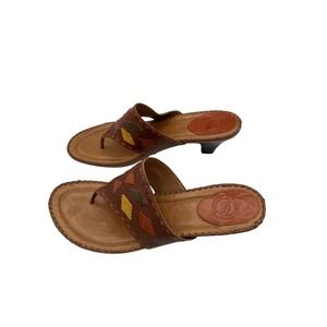 Nurture Leather Thong Sandals Heeled Slides Geometric Brown Sz 9.5M