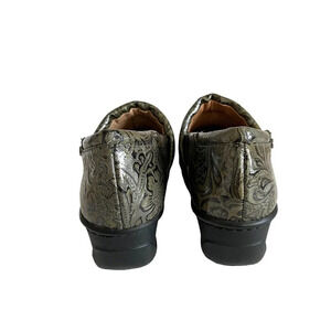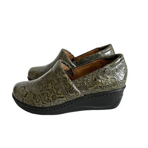 Leather Embossed leather clog Padded footbed Approximate heel height 2”