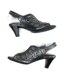 Nurture Penelope Women Shoes Metallic Gray Sz 6 Leather Cut Out Comfort Sandals