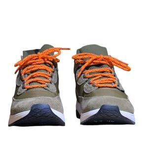 Athletic shoes, running shoes, casual shoes, color, green shoes, orange, suede shoes, nylon shoes, trendy, stylish, modern, streetwear, lightweight shoes, high-top, platform, shock absorbent, lace up shoes
