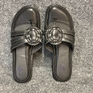 Nurture Sandals Womens 7.5M Black Leather Wedge Slip On Slide Open Toe Comfort29