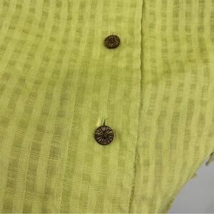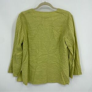 Nurture Shirt Womens Sz M Green Check 3/4 Sleeve Woven Linen Blend Button Up Top
