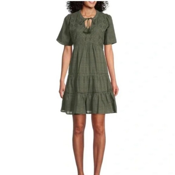 Nurture Westbound Eyelet Lace Tiered Dress sz 3X Olive Green Cottagecore Boho