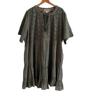 * Nurture Westbound Eyelet Lace Tiered Dress sz 3X Olive Green Cottagecore Boho
