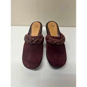 Nurture Womens 8.5M Sophia Mules Clogs Braided Strap Slip On Suede Leather Wine