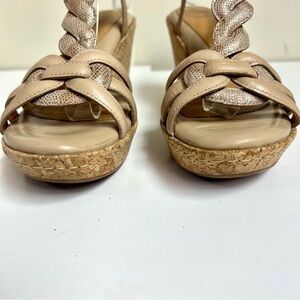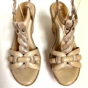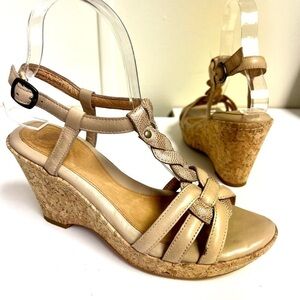 Nurture Womens Glimmer Beige T Strap Leather Wedge Heel Sandals Open Toe 6.5M