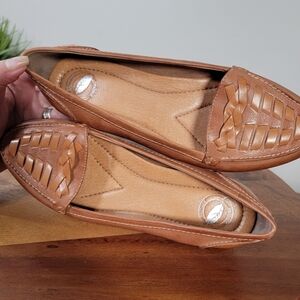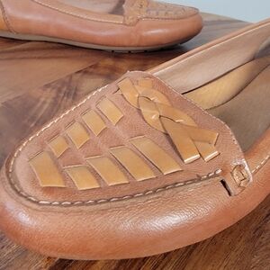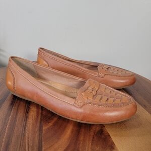 Nurture Women's Tan Leather Loafers Size 6.5 Almond Toe Comfy Basics Neutrals
