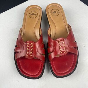 Nurture Women's size 9 M Red Leather Slip-On Sandals Open Toe low top.