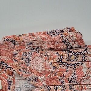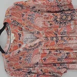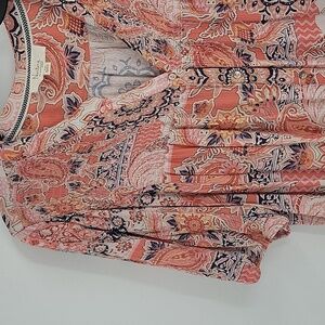 This charming pink blouse from Nurture showcases puffy sleeves with elastic bottom, a pleated neckline, and 5 button down creating a relaxed and elegant silhouette. The soft, flowy fabric ensures comfort and style, making it a versatile piece for any occasion. Gently worn and in great condition!!