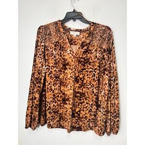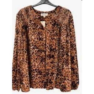 Nurture by Westbound Animal Printed Long Sleeve Smocked V-Neck Top Size 2XL NEW