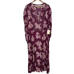 Nurture by Westbound NEW Floral Maxi Tiered Boho Dress Plus Size 2X Mauve Pink