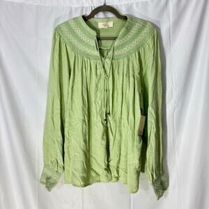 Nurture by Westbound Plus Size 2X Smocked Woven Long Sleeve Button-Front Top
