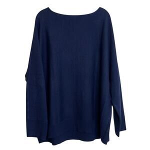 Nurture by Westbound Womens Sweater 2X Navy Blue White Floral Print Boat Neck Dolman Sleeves