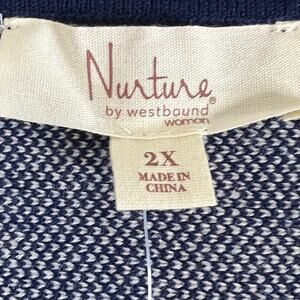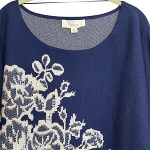 Nurture by Westbound Womens Sweater 2X Navy Blue White Floral Print Boat Neck