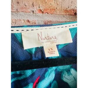 Nurture by westbound Women's Blue Leaf Print V-Neck Long Sleeve Blouse Sz 1X NWT